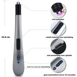 Oplaadbare Lange Dunne Elektrische Aansteker – Duurzame Plasma Aansteker – Inclusief Cadeauverpakking – BBQ – Kaarsen – Zilver