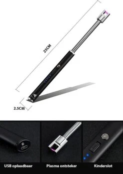 Oplaadbare Lange Elektrische Aansteker – Zwart – Duurzame Plasma Aansteker – Inclusief Cadeauverpakking – BBQ – Kaarsen