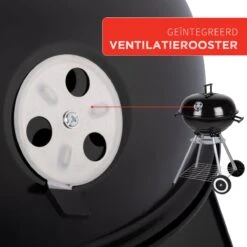 Deze barbecue heeft een hoogte van zo’n 60 cm en doorsnee van circa 45 cm. Dit formaat is voor veel mensen prima. Hij heeft verder 2 wieltjes waarmee je hem gemakkelijk verplaatst, handvatten en een haak waarmee je de deksel even kan ophangen. Zo houd je je handen vrij om bijvoorbeeld het vlees te draaien. De BBQ heeft ook een ventilatierooster waarmee je de zuurstoftoevoer regelt en daarmee de temperatuur.