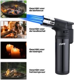 GASREGELAAR: Deze gasbrander beschikt over een gasregelaar. Daarmee kan jij perfect de gas toevoer en dus ook de hoogte van de vlam regelen. Wij raden altijd aan om hem in het midden te zetten zodat je optimaal gebruik maakt van je aansteker.
