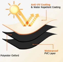 De barbeque beschermhoes is rond en zwart van kleur. Dankzij het lichte gewicht is de hoes gemakkelijk aan te brengen en op te bergen. De coating zorgt ervoor dat de BBQ hoes waterafstotend is. Hierdoor wordt uw barbecue optimaal beschermt.