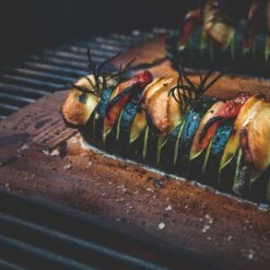 Voor extra smaakbeleving én een leuke presentatie kun je het gerecht zelfs op de plank opdienen (gebruik wel een onderzetter om je tafel te beschermen). - Je hoeft je vlees, vis of groenten niet om te draaien. Geen zorgen dus dat je mooie zalm uit elkaar valt, of dat je worstje tussen het rooster door in de gloeiende kolen valt.