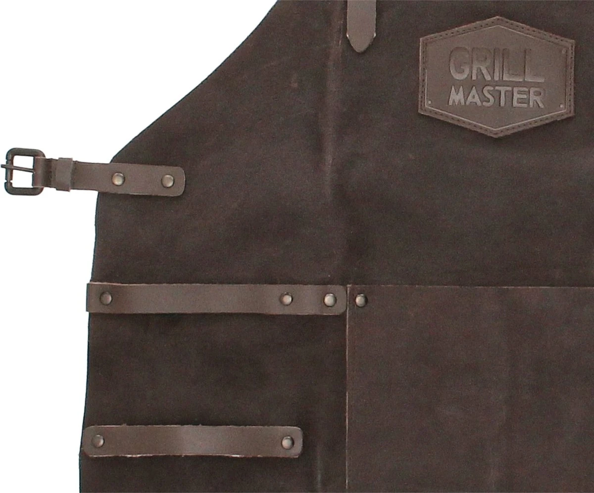 Een stoer schort, gemaakt van echt leer in een bruine kleur met ruwe afwerking en bruine accenten. Met dit leren schort sta je als een echte professional te koken of te barbecueën. Het schort heeft handige verstelbare bandjes die je met gespen vast kan zetten, in de nek is een extra versteviging gemaakt waardoor het leer niet in je nek snijdt.