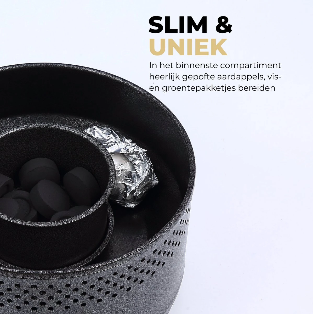 Gemakkelijk en snel barbecueën op diverse locaties zoals op de boot, balkon, terras of meenemen naar een vakantiebestemming. Met een bakoppervlak van 27,5 cm laat de barbecue zich makkelijk gebruiken tot 4 personen, waarbij door een unieke bouw van de barbecue ook bijvoorbeeld groente kan worden gekookt. Door het speciale ventilatiesysteem zijn de kolen snel op temperatuur. Binnen 3 minuten kan het vlees, vis of groente op de barbecue om vervolgens heerlijk te genieten van een lekkere maaltijd en gezelligheid.