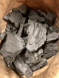 Gamhar komt uit het zuiden van Afrika en heeft een hoge dichtheid, echt zware kwaliteit. Hierdoor brandt het langer en heeft een hoge energiewaarde. Je bereikt dus met gemak een hoge temperatuur. Van gamhar worden bijvoorbeeld meubels en dekken voor boten gemaakt. Mooie grove stukken houtskool (4-12cm), perfect voor de kamado. Doordat de zakken in Nederland gevuld worden zit er weinig gruis in de zakken. Zuivere restaurant kwaliteit, absoluut vrij van chemicaliën. De geur en smaak is neutraal te noemen, perfect als basis houtskool met een erg goede prijs/kwaliteit verhouding!