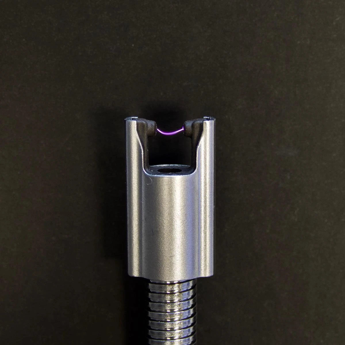 Uit deze aansteker komt geen vlam, maar een electrisch stroomboogje. Hierdoor kun je ook buiten in de wind alles aansteken.